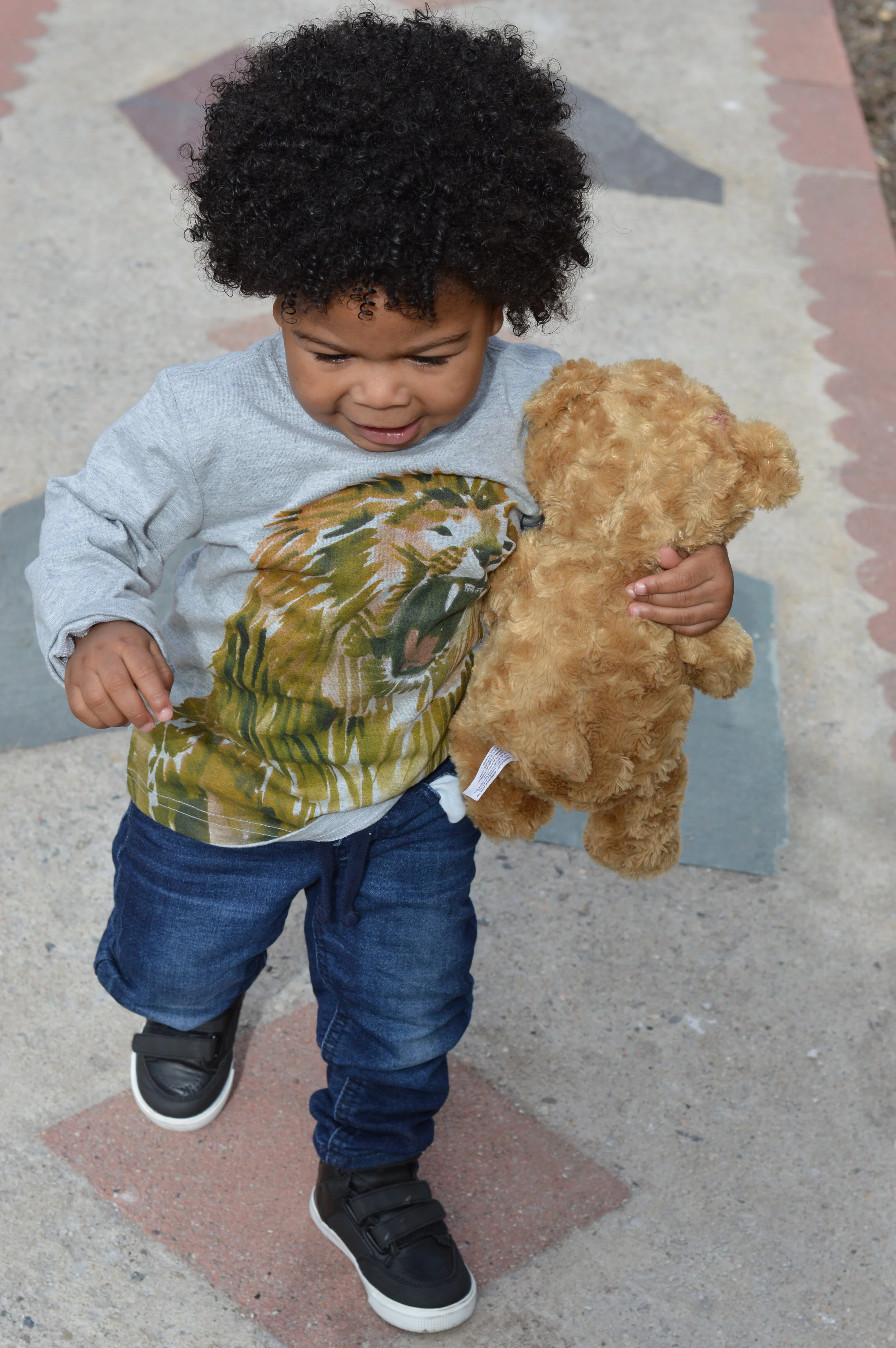 So anyways here he is, just rocking a long sleeve lion t-shirt with some skinnies and black sneaker boots (ALL of which were on a super amazing sale!). His top is from Gymboree and they were doing 60% off the clearance so it came out to less than $5, The skinny jeans are from the Gap Factory and they were $8 and his shoes were $8 (also from the Gap)! I have another post coming up about how I get these amazing deals so you will have to stay tuned for that!